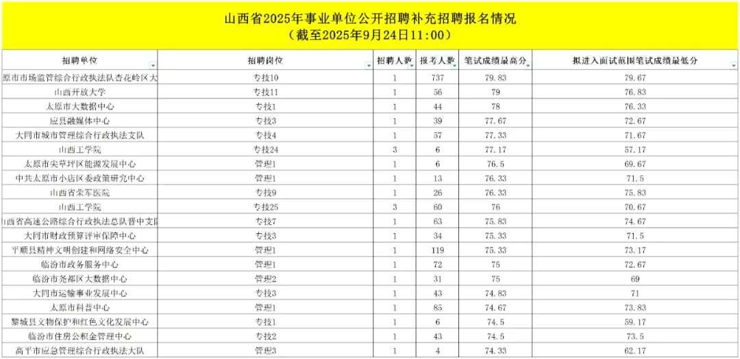 2025山西事业单位联考补录岗位查询&实时报名人数表