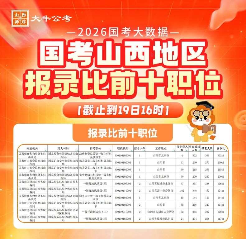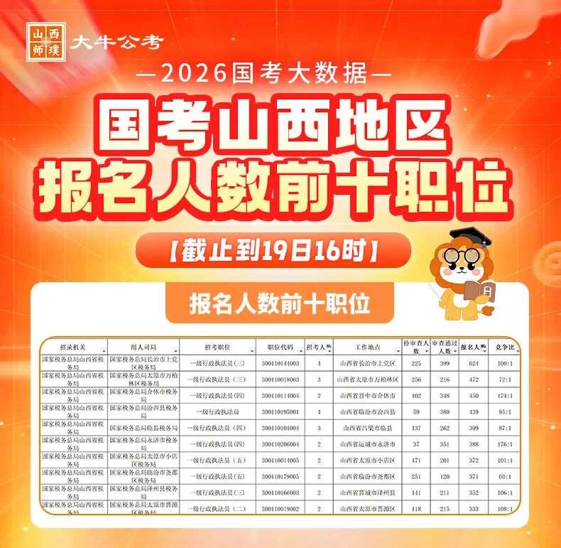 29451人!*大报录比306:1!山西2026国考第5天报名情况出炉!