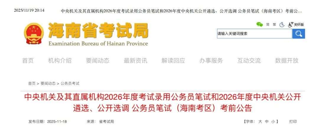 2026年度中央机关公开遴选、公开选调 公务员笔试(海南考区)考前公告