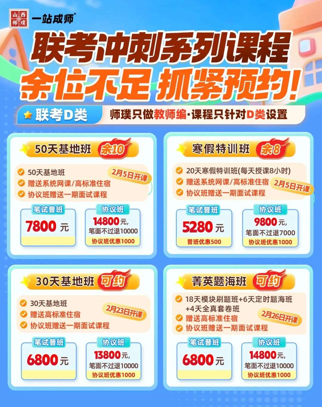 💥联考D类系列班余位不足!