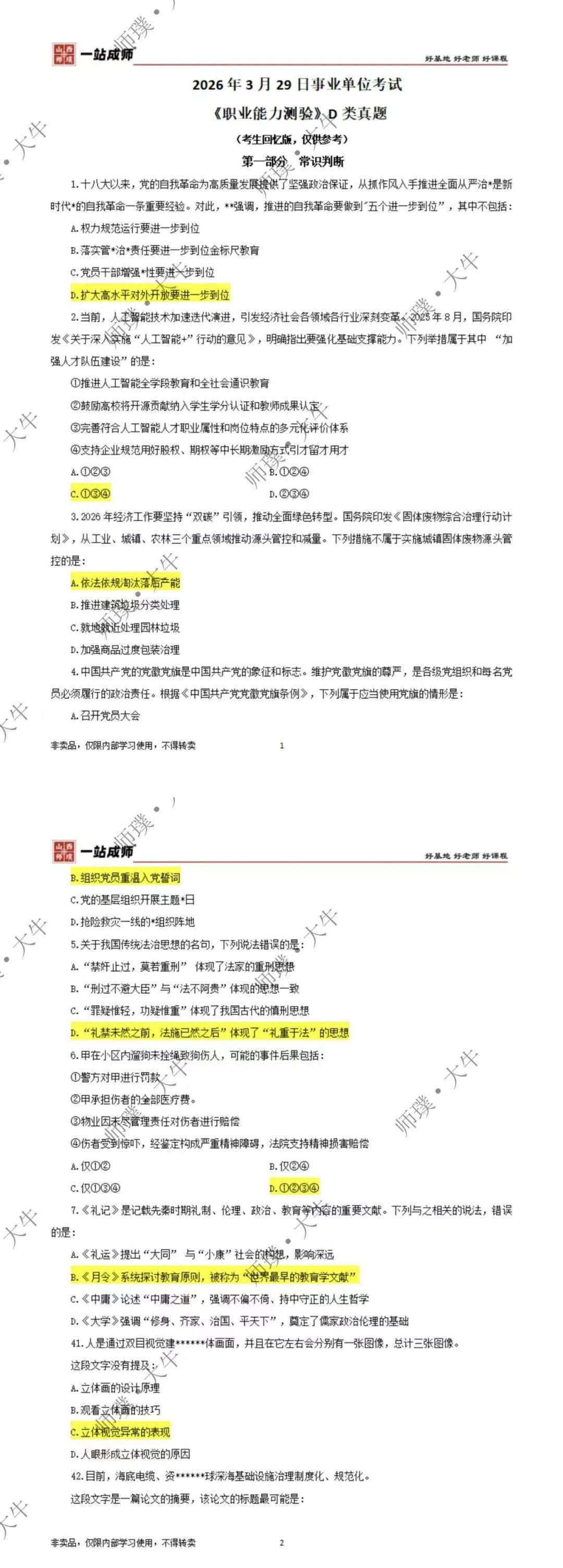 对答案!26山西3.29联考笔试真题及答案(考生回忆版)出炉!