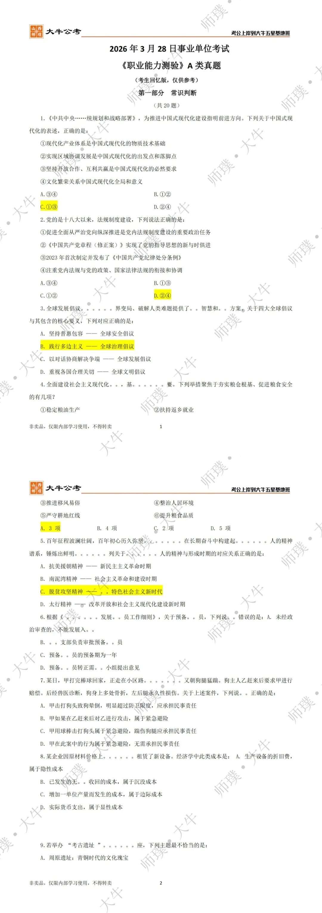 对答案!26山西联考A类笔试真题及答案(考生回忆版)出炉!
